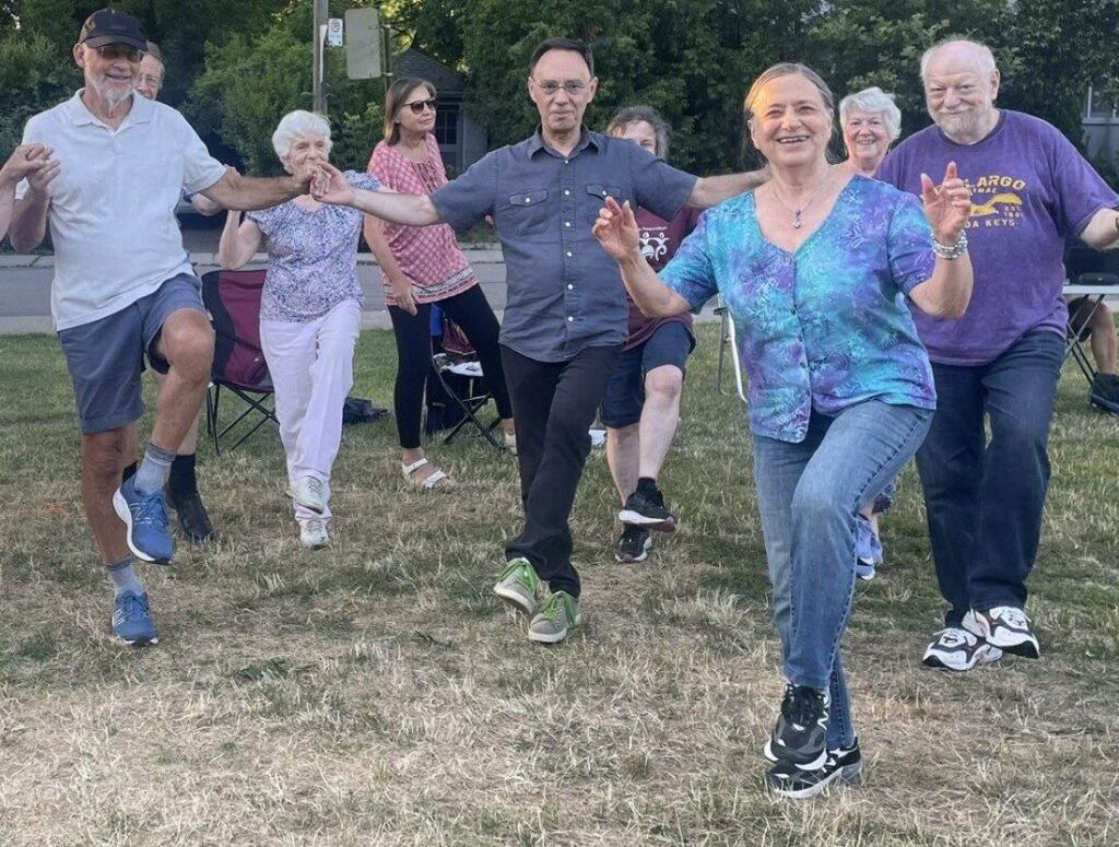 For decades, Judy has co-run the Toronto International Folk Dance Club’s weekly in-person class, and she founded Village Folk Ensemble, a well-regarded performance troupe.